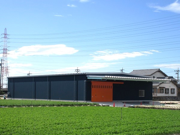きれいなオレンジ色の扉が印象的な倉庫です。